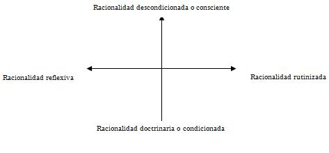 a) Necesidad de trascender los ‘paradigmas’ habermasianos. La epistemología pedagógica consensuada gira desde hace unos 45 años en torno a los llamados ‘paradigmas pedagógicos’, que no nacieron en ninguna escuela, ni en la Pedagogía y que resultan lejanos e indiferentes a la mayoría de los docentes. Su origen proviene de una contribución realizada en 1968 por Habermas (1989), desde la Filosofía de la conciencia. Es bastante extraño que un autor que apenas se haya ocupado de la educación y cuya aportación es poco original, sea tan relevante en la investigación pedagógica. En “Conocimiento e interés” (1989), de 1968, define tres intereses del conocimiento (‘técnico’, ‘práctico’ y ‘emancipatorio’ (que califica como “interés último de la razón”), que estructuran sendos tipos de ‘saberes’, que a su vez conducen a tres tipos de reconocimiento. Estos saberes, además, enraízan dimensiones y acciones sociales: el trabajo, la relación humana y el poder, respectivamente. Del primero se ocuparían las ciencias empíricas; del segundo, las interpretativas, hermenéuticas e históricas, y del tercero todas, si bien reorientadas críticamente. Uno de los autores que más potenció la visión de Habermas fue el pedagogo holandés Van Manen (1977), quien la trasladó a la racionalidad pedagógica. Así, este autor, émulo de Habermas, asocia tres “niveles de responsabilidad”, reflexión y acción para la práctica: Tecnológico, interpretativo y -según dice, remedando a Habermas- un tercer “y último” nivel de reflexión y aplicación sociocrítica. Sobre todo en los dos últimos niveles se ha fundamentado el desarrollo del modelo de profesor práctico-reflexivo. Observando la propuesta epistemológica desde nuestro sistema de referencia, deducimos que esos paradigmas sólo atrapan una parte de la realidad educativa. La realidad no tan evidente pero más relevante, definida por los constructos radicales, no se refleja en ellos. En efecto, constatamos que en buenas descripciones del ‘enfoque interpretativo’ (p. ej., Schwab, 1974; Van Manen, 1977; Gimeno Sacristán y Pérez Gómez, 1988; Guarro, 1990; Liston, y Zeichner, 1993; Moreno Olmedilla, 1999, etc.) o del ‘enfoque sociocrítico’ (p. ej., Van Manen, 1977; Apple, 1986; Escudero Muñoz, 1987; Liston, y Zeichner, 1993; Giroux, 1993; Carr y Kemmis, 1988; Kemmis y McTaggart, 1988; Martínez Bonafé, 1996; Rozada, 1997; Bolívar, 1999, etc.), no se incluyen. Tampoco sus premisas podrían albergarlos. En Herrán (2009b) se desarrolló la posibilidad de que, desde su razón, cualquier docente pudiera trascender los enfoques habermasianos consensuados. En primer lugar, por el marcado criterio de autoridad que los ha respaldado desde su origen. Decía Einstein a Host Winteler en una carta que: “Una fe insensata en la autoridad es el peor enemigo de la verdad” (en Blanco Laserna, 2012:151). Esta cita, que quizá suscribiera Roger Bacon, retrata bien lo que a nuestro juicio ha presidido gran parte del trayecto epistemológico de la Didáctica, en cuanto al discurso paradigmático. Entendemos que en sus inicios pudo ser positivo, pero hoy es demasiado incompleto o errático, a pesar del alto consenso asociado y la escasa criticidad percibida. Pero: “Un error no se convierte en verdad por el hecho de que todo el mundo crea en él” (Gandhi, 2001). En este trayecto ha habido muy pocos creadores y muchos criadores, pocas voces y muchos ecos, una escasa rebeldía pedagógica de lo que se ha considerado consensuado y una autocrítica menor aún de quienes en algún momento se han definido como ‘críticos’, porque el modelo les favorecía y suscribía sus anhelos. Por ello, cualquier docente puede trascender los enfoques consensuados desde una razón descondicionada o creativa. Es una posibilidad, pero también es un imperativo kantiano intentar ir más allá de estos enfoques y de sus racionalidades. Nuestra propuesta es hacerlo desde el enfoque complejo-evolutivo y los constructos formativos radicales, desde los que las racionalidades docentes se redefinen: