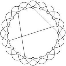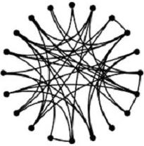 Existen otros tipos de redes que han sido estudiados desde hace varias décadas, y que se forman de la siguiente manera: tomemos de nuevo 20 nodos en un círculo, al igual que en la figura 1, ahora desconectamos cada nodo de su vecino a la derecha y lo reconectamos con un nodo tomado al azar. El resultado puede verse en la figura 3. A este tipo de redes se les califica como aleatorias, y se usan para modelar procesos físicos en donde hay desorden o variaciones aleatorias.(NOTA 5), (NOTA 6), (NOTA 7)