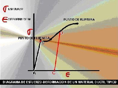 Si la tensión se retira después del punto de fluencia, el esfuerzo y la deformación decrecen linealmente a lo largo de la línea CD paralela a la recta AB de la curva de carga. En este caso el material sufre deformaciones permanentes, el proceso se ha tornado irreversible.